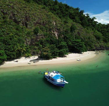 Paraty é cercada por ilhas, enseadas e montanhas cobertas pela Mata Atlântica. Em um passeio de barco privativo, você aprecia essas paisagens com calma, navegando por águas em tons de azul e verde, com paradas estratégicas para fotos e mergulhos.