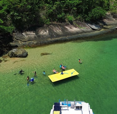 No passeio de barco privativo, o valor é calculado pela embarcação e não por pessoa. Isso significa que, para famílias ou grupos, o custo-benefício pode ser muito melhor do que parece.